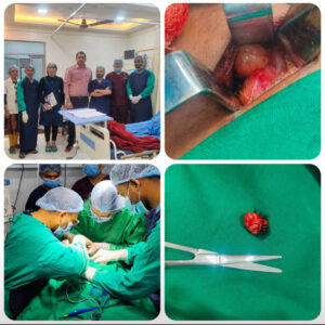 The patient underwent Minimal Invasive Parathyroidectomy (MIP) with 2.5 cm incision. Intraoperative USG done for localisation. Intraoperative frozen section confirmation done. Intraoperative blood samples sent for PTH levels at 5 minutes and 15 minutes which showed fallen values of 93.9 and 51.9 respectively from preoperative values of 326. Post operative patient parathyroid level back to normal level.